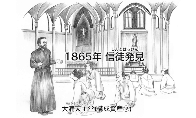 長崎と天草地方の潜伏キリシタンは、日本の開国にともなって来日した宣教師によって建てられた長崎の「大浦天主堂」で約2世紀ぶりに宣教師と再会した。1865年に長崎の浦上村の潜伏キリシタンが大浦天主堂を訪れ、宣教師に自分たちの信仰を告白した。この衝撃的な出来事は「信徒発見」と呼ばれ、これにより潜伏キリシタンは転機を迎えることとなった。