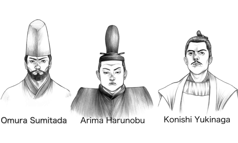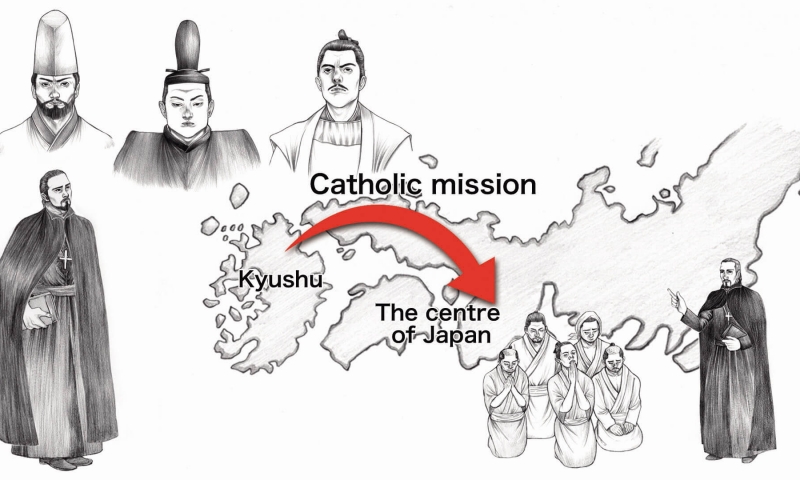 선교사들은 그리스도교를 전파함에 있어 우선 영주(다이묘)에게 가르침을 설해 불교에서 그리스도교로 개종시킨 뒤, 그들을 통해 휘하의 가신과 영지의 백성들을 개종시키는 방법을 선택했다. 영주가 개종하지 않는 경우에는 예물을 바치고 무역을 알선하며 다이묘의 가신과 영지의 백성들에게 그리스도교를 선교할 수 있는 허가를 얻어 활동을 전개했다. 이러한 방법으로 그들은 단기간에 많은 개종자를 확보할 수 있었다. 규슈 지방 영주(다이묘)들의 상당수가 포르투갈 선박과의 무역(남만 무역)에서 이익을 얻기 위해 선교사의 활동을 받아 들였다. 그 중에는 그리스도교로 개종하여 점차 그리스도교 신앙에 깊이 귀의하게 된 자들도 나타났다. 그들은 ‘기리시탄 다이묘’라고 불렸으며 그리스도교를 보호하고 선교사들의 선교활동을 지원했다. 규슈 지방의 주요 기리시탄 다이묘로는 오무라 스미타다(大村純忠), 하라 성을 축조한 아리마 하루노부(有馬晴信), 오토모 소린(大友宗麟) 등이 알려져 있다. 1588년에 아마쿠사 지방의 영주가 된 고니시 유키나가(小西行長) 또한 기리시탄 다이묘 중 한 명이었다.