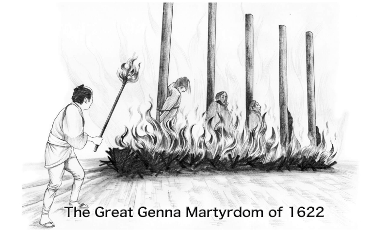 이 때문에 에도막부는 선교사의 잠입을 막부에 밀고한 자에게 포상을 내렸고, 더 나아가 선교사가 체포된 경우에는 그들을 숨겨준 자들까지도 고문한 뒤 처형했다. 1622년에는 나가사키에서 구금된 사제와 수도사, 그들을 숨겨준 일본인 기리시탄 등 총 55명이 화형해 처해지거나 참수 당하는 사건이 일어났다. 이른바 ‘겐나의 대순교’이다.