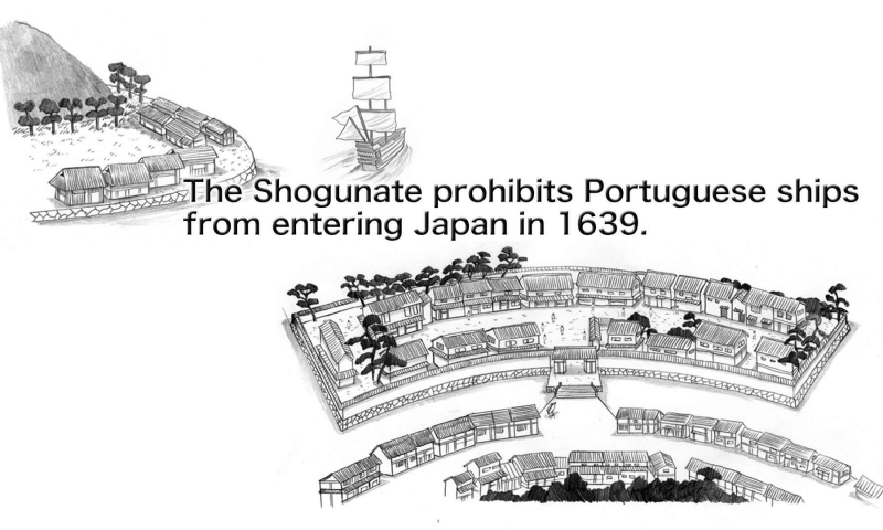 기리시탄이 일으킨 ‘시마바라・아마쿠사의 난’으로 그리스도교를 커다란 위협으로 간주한 에도막부는 1639년, 선교사가 밀입국을 꾀할 가능성이 있는 포르투갈 선박의 내항을 금하고 한 세기 가까이 유지해 온 포르투갈인과의 무역관계를 단절했다. 이른바 ‘쇄국’이라 불리는 해금정책(海禁政策)을 취하게 된 것이다. 이로써 유럽과의 교역은 선교사에 의한 선교활동의 우려가 없는 프로테스탄트(신교) 네덜란드로 국한되었으며 교역 창구도 히라도에서 나가사키의 ‘데지마’로 이전되었다.