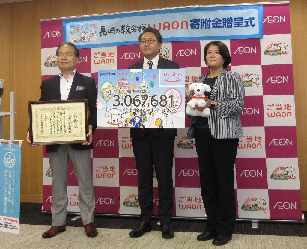 2022年7月20日、イオン九州株式会社様から「長崎と天草地方の潜伏キリシタン関連遺産基金」へご寄附をいただきました。